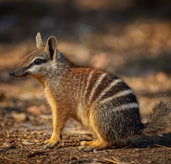 넘밧은 호주 서부의 특정 지역에서만 서식하는 희귀한 유대류입니다. 다람쥐처럼 작고 가늘며, 길고 가느다란 혀와 가로줄 무늬가 있는 갈색의 털로 덮여 있어 첫눈에 보기에도 독특한 인상을 줍니다. 성체 기준 몸길이는 약 20~27cm, 꼬리는 몸만큼 길며, 체중은 300~700g 정도로 작고 가볍습니다. 그러나 그 생태적 특성과 생존 방식은 결코 작지 않습니다. 넘밧은 전 세계 유대류 중에서 거의 유일하게 '주행성(낮에 활동)'을 보이는 종으로, 이는 야행성이 대부분인 유대류의 일반적 특성과는 완전히 대조됩니다. 이러한 특이한 활동 패턴은 넘밧이 먹이로 삼는 개미와 흰개미의 생활 리듬과 밀접하게 연관되어 있습니다. 넘밧은 하루에 약 20,000마리의 흰개미를 섭취하며 살아갑니다. 이들은 나무줄기 아래, 낙엽 더미, 땅속 흙더미 등에서 혀를 집어넣어 개미를 핥아 먹으며, 개미탐색을 위한 후각과 청각이 매우 발달되어 있습니다. 하지만 이와 같은 식성은 에너지 효율이 낮기 때문에, 하루 대부분의 시간을 먹이 탐색에 사용해야 합니다. 이로 인해 넘밧은 햇빛이 가장 강한 낮 동안에도 계속해서 움직여야 하며, 이는 천적에게 자신을 노출시키는 위험으로 이어집니다. 그러나 넘밧은 이와 같은 위협에 맞서기 위한 다양한 방어 전략과 은신 능력을 진화시켜 왔으며, 오늘날에도 소리 없이 살아가는 사막의 생존 전문가로 남아 있습니다.